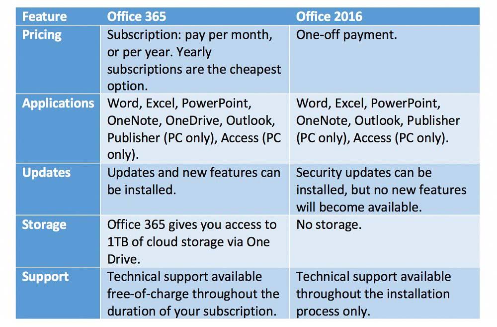 اگر هنوز در انتخاب پلن مناسب خود برای خرید Office 365 تردید دارید، به جدول زیر توجه کنید: