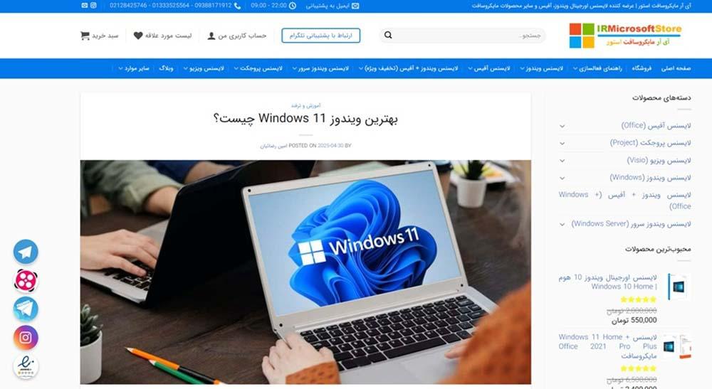 با توجه به تحریم هایی که بر علیه کشورمان اعمال شده و عدم اتصال سیستم های بانکی کشور ما به سیستم بانکی بینالمللی عملاً این امکان وجود ندارد که ما ایرانی ها با اکانت های بانکی و کارت های اعتباری خودمان از سایت های خارجی مثل مایکروسافت خرید کنیم. همین امر سبب میشود که علاوه بر قیمت ویندوز ۱۱ اورجینال بحث مرجع خرید آن هم حائز اهمیت قرار گیرد و کاربران با سوال “از کجا لایسنس اورجینال ویندوز 11 بخریم؟” مواجه شوند. موضوع یک پاسخ صریح به شما ارائه میکنیم. اگر میخواهید لایسنس های قانونی و معتبر محصولات مایکروسافت از ویندوز گرفته تا آفیس را با ارزان ترین قیمت ممکن تهیه کنید و خیالتان هم از بابت اورجینال بودن کد دریافت شده راحت باشد و یک ضمانت مادام العمر در مورد اصالت لایسنس در اختیارتان قرار گیرد، فروشگاه آی آر مایکروسافت استور بهترین مرجع به منظور خرید لایسنس ویندوز 11 مایکروسافت است. شما حتی میتوانید از این فروشگاه پک های فیزیکی ویندوز اورجینال را سفارش دهید تا دیگر لازم نباشد درگیر مراحل دانلود ایزو ویندوز و ریختن آن روی فلش یا دی وی دی و بوتیبل ساختن آن شوید.