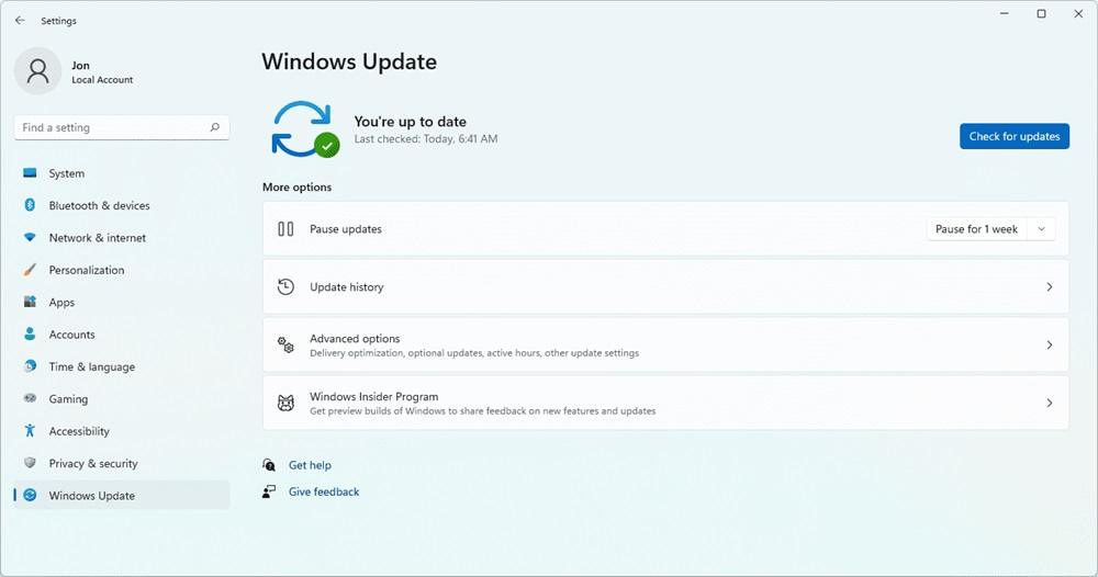 پس از ورود به منوی تنظیمات باید به قسمت Windows Updates بروید. معمولا آپدیت های ویندوز 11 و 10 به طور خودکار و مادامی که شما به اینترنت وای فای متصل هستید انجام میشود اما در برخی مواقع هم ممکن است این آپدیت ها خودکار نصب نشوند که در این حالت با کلیک روی گزینه Check for Updates میتوانید دستوری بررسی وضعیت آپدیت بودن یا نبودن سیستم را صادر کنید.
