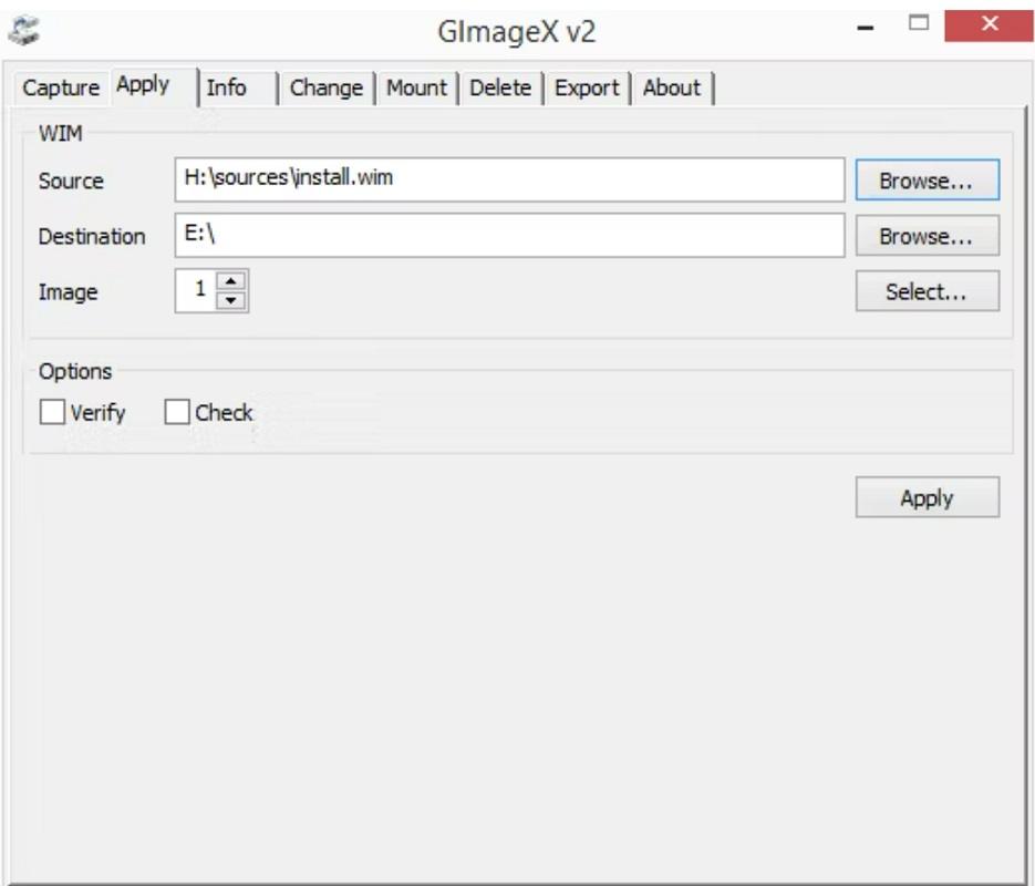 حالا فایل ISO ویندوزی که دانلود کرده بودید را در درایو مجازی کامپیوتر Mount کنید تا تمام محتوای درون آن قابل دسترس شود. برای انجام این کار کافیست روی فایل ISO ویندوز کلیک راست کنید و سپس گزینه Mount را انتخاب نمایید. دقت کنید که مسیر مونت شدن (Mount) را به خاطر بسپارید. حالا برنامه GImageX را اجرا کنید. در قسمت Source باید آدرس فایل install.wim که در مسیر فایل ISO مونت شده وجود دارد را انتخاب کنید. در بخش Destination هم باید درایو فلش مموری شما که قرار است بوتیبل و لایو شود انتخاب گردد. پس از انتخاب موارد نام برده شده روی گزینه Apply کلیک کنید تا عملا پروسه نصب ویندوز قابل حمل و لایو روی فلش مموری شروع شود.