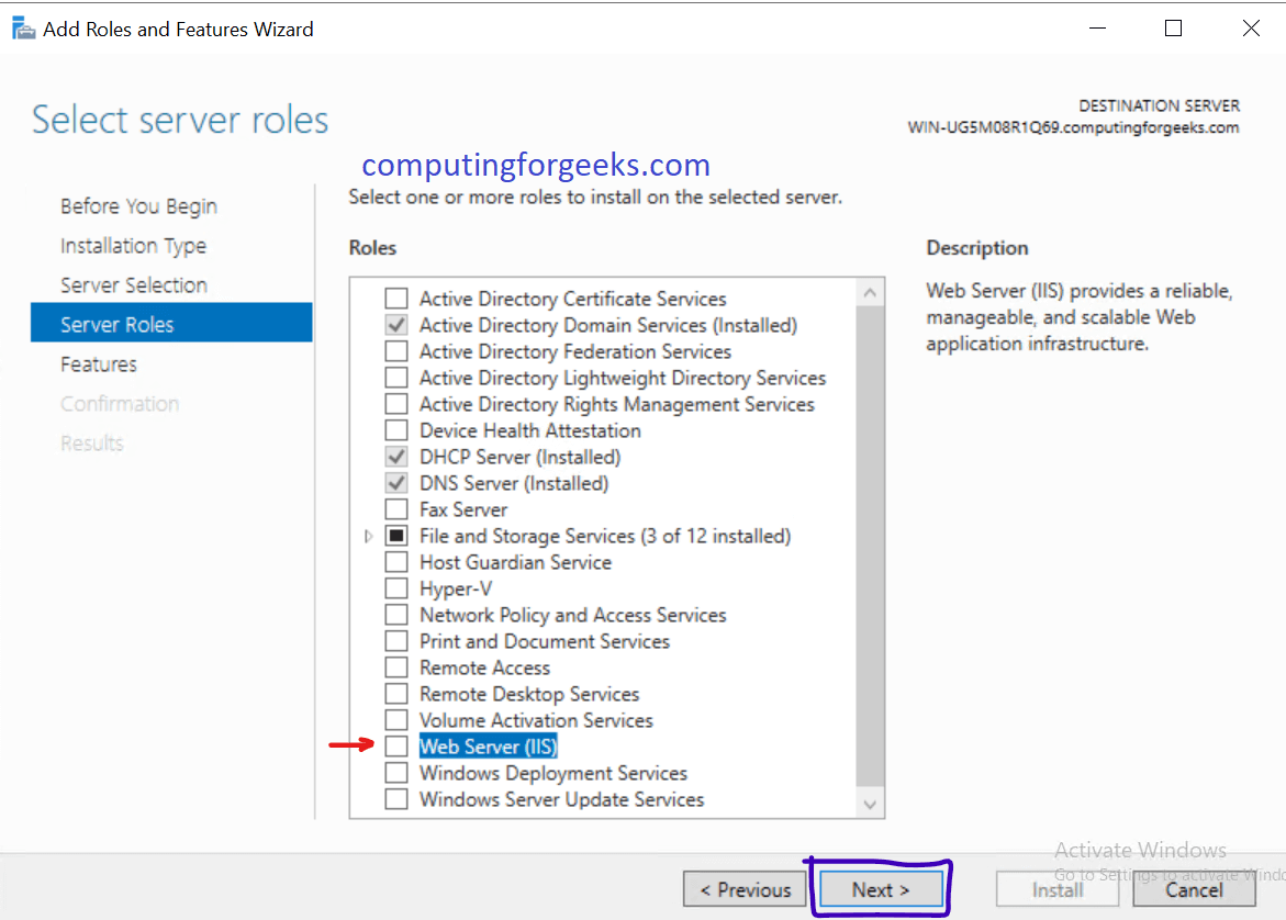 مطمئن شوید گزینه هایی که در عکس فوق انتخاب شدهاند، روی سرور شما هم انتخاب شده باشند و سپس روی گزینه Next کلیک کنید.