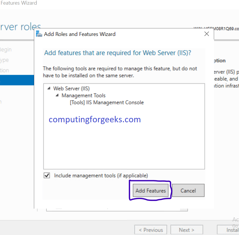 در صفحه پاپ آپ ظاهر شده بر روی گزینه Add Features کلیک نمایید.