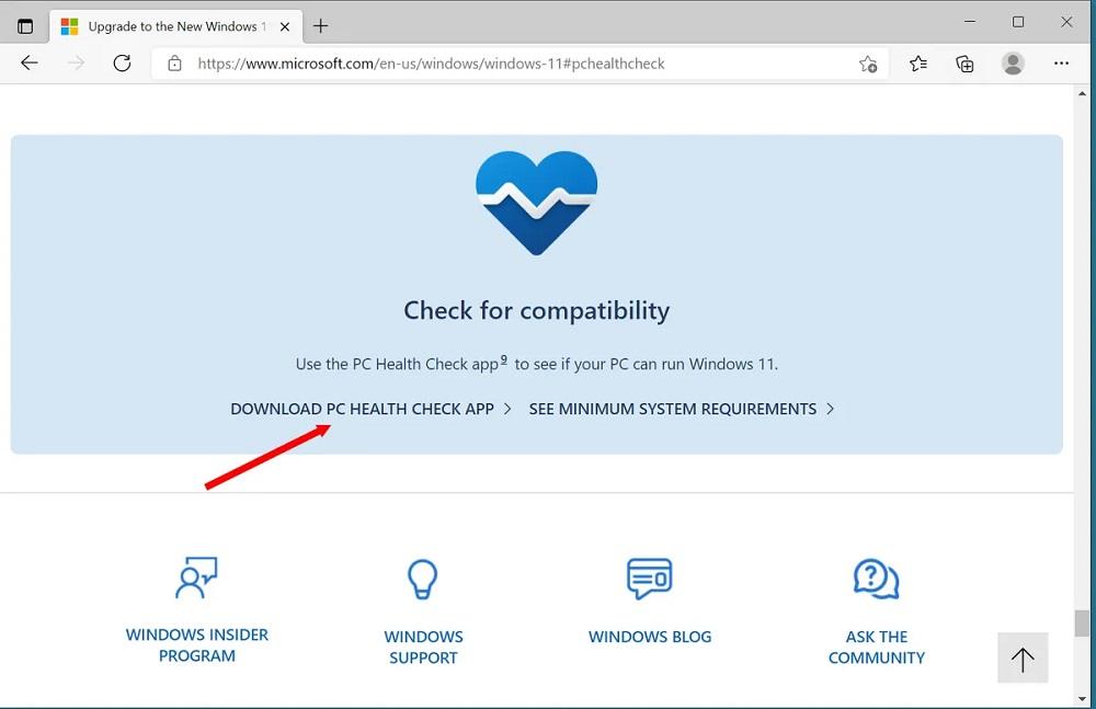 حالا مایکروسافت از شما میخواهد که برنامه PC Health Check را دانلود و نصب نمایید. این برنامه را با کلیک روی لینکی که مایکروسافت ارائه کرده دانلود، نصب و اجرا نمایید. با استفاده از این برنامه میتوانید مطمئن شوید که آیا کامپیوتر شما از نظر سخت افزاری امکان آپدیت ویندوز 10 به 11 بدون پاک شدن اطلاعات را دارد یا نه!