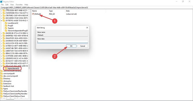 نام پوشه جدیدی که ساخته شد را InprocServer32 قرار دهید و آن را انتخاب کنید. مشاهده خواهید کرد که در سمت راست صفحه یک فایل با نام Default ظاهر میشود. روی این فایل دو مرتبه کلیک چپ کنید تا یک پنجره پاپ آپ باز شود. مطمئن شوید که در فیلد کنار گزینه Value data این بخش هیچ چیزی نوشته نشده باشد. پس از اطمینان از این موضوع روی گزینه OK کلیک کنید. حالا میتوانید به طور کامل بخش رجیستری را ببندید و کامپیوتر خود را ریستارت کنید. بعد از اینکه سیستم دوباره بوت شد، تمام کلیک راست هایی که انجام دهید دقیقا مشابه با قبل و حالتی که در ویندوز 10 وجود داشت ظاهر میشود و یک منوی کامل را ارائه میکند.