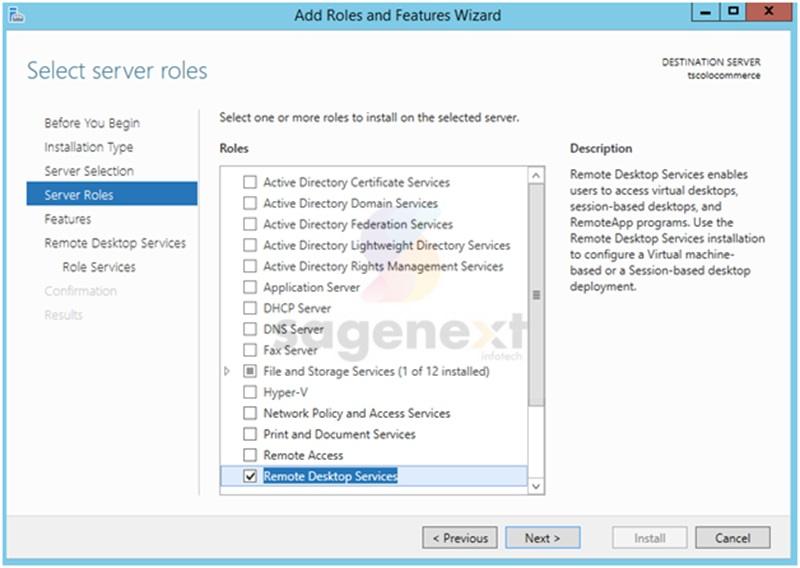 حالا گزینه Role Services را از منوی سمت چپ انتخاب کنید و به مرحله مربوط به آن بروید. روی گزینه Add Feature کلیک کنید و تیک گزینه های Remote Desktop Licensing و Remote Desktop Session Host را بزنید. سایر مراحل نصب را طی کنید تا نصب RDS Server Role یا رول ریموت دسکتاپ سرویس با مشخصات و شرایطی که شرح دادیم روی سرور شما انجام شود. پس از اینکه نصب RDS انجام شد باید مراحل بعدی مورد نیاز جهت فعالسازی این قابلیت را صورت دهید.