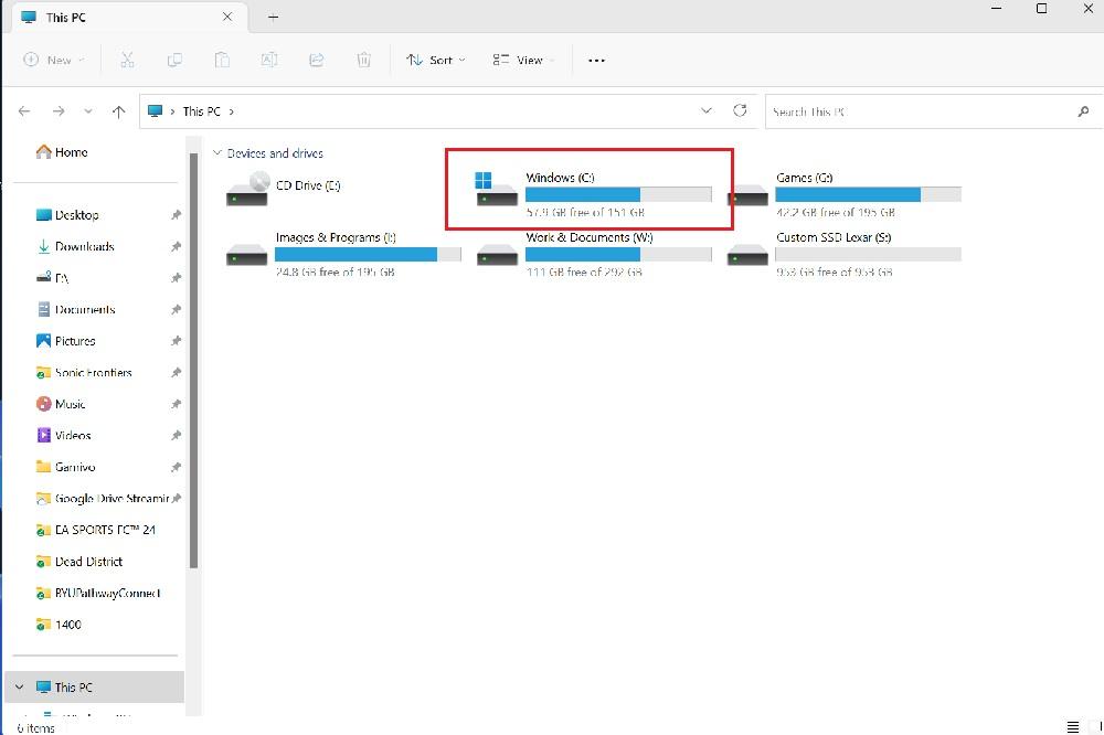 خوشبختانه برخلاف تصور خیلی از کاربران پاک کردن ویندوز و نصب دوباره آن کار بسیار سادهای است! اگر دقت کرده باشید روی هر کامپیوتری که ویندوز روی آن نصب و اجرا شده یک درایو اختصاصی در بخش My Computer یا This PC به عنوان درایو اختصاصی ویندوز در نظر گرفته شده و موجود خواهد بود. این درایو در 95 درصد مواقع با نام C شناخته میشود و یک نمونه از آن را در تصویر زیر مشاهده میکنید.